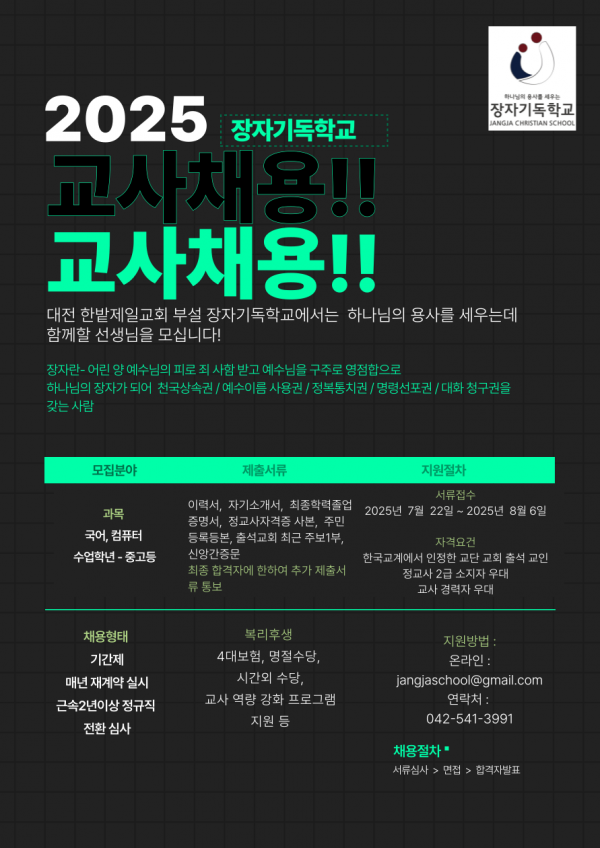 대전 장자기독학교 교사채용(국어. 컴퓨터) 페이지 정보 작성자 기린 댓글 0건 조회 1,713회 작성일 25-08-04 09:48 본문 목록 이전글더샘물학교 유치원 교사 채용 안내 (~8/25) 25.08.04 다음글(마감)[고양] 2025년 글로벌리더스기독학교 교사 채용 공고 25.07.29 댓글목록 댓글목록 등록된 댓글이 없습니다.