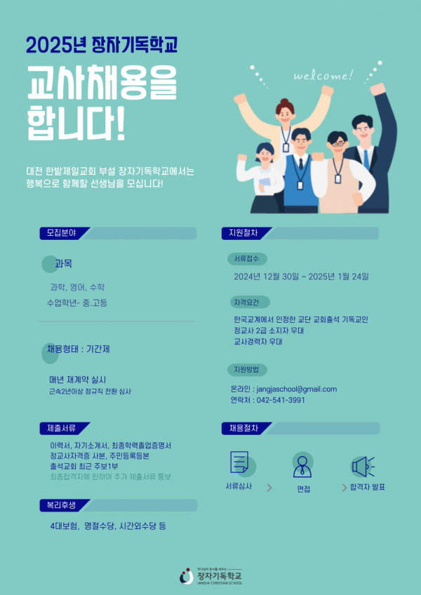 - 다음글[화성]은혜의동산기독교학교, 중학교과정 국어교사를 모십니다.(완료) 24.12.29